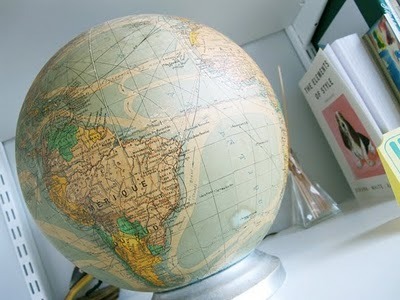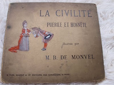 1950's French globe-turned-lamp from Bliss Farm Antiques, Rehoboth MA (thank you to lovely owner, Jackie) Also from Bliss, La Civilité (Puérile et Honnête) an antique picture book of manners for children, illustrated by M.B. De Monvel...she found these things on her yearly trips to the Paris flea markets! Lucky treasure and Christmas presents from Matt :