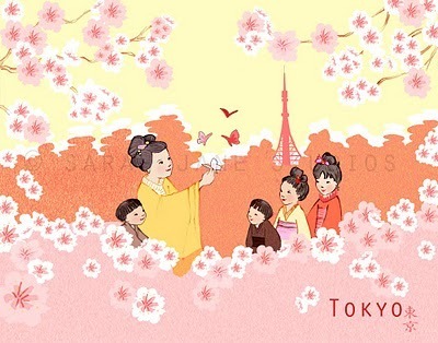 While you are there, become inspired by her cheery blog, check out her shop, and especially her darling new line of "travel" art, called Children Around the World (see below for her latest installment). She's also working on a textile line and picture books, so keep your eye on this talented lady. Thank you for having Dotty over to visit, Sarah!