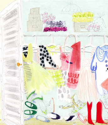 Life continues at a fast clip. See you very soon with art from the new book coming in 2011, I Had a Favorite Dress by Boni Ashburn! Do you want to take a quick peek inside the closet of the little girl who lives in the book?...