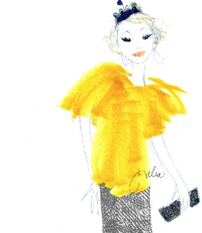 Here's a quick little color vision I had to paint out before getting back to work! She came out of my chasing yellow all day and this song performed by the String Orchestra of New York City. She's named for Eleanor Parker: her well-known villainess role, her platinum blonde hair and austere little brows. The Baroness is gliding around in "Yellow Orange-15" Prismacolor taffeta, charcoal lashes, and a little peacock-ish crown. And now to stop playing and return to my assignments...! Today is s...