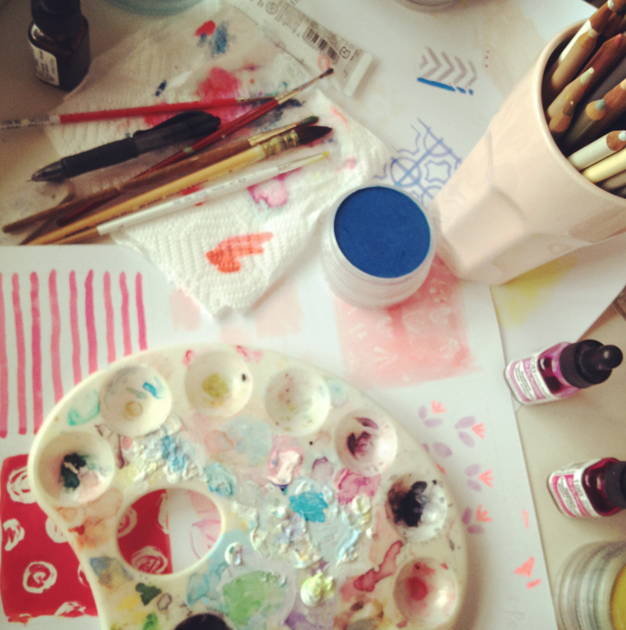 Hey friends! It's been a while...a long while full of art making (and subsequent lack of important things like housekeeping, blogging, breakfast) rolled right into a last minute trip to San Fran. It was a sun spot in the middle of the deadlines. Paint was still drying while I packed!