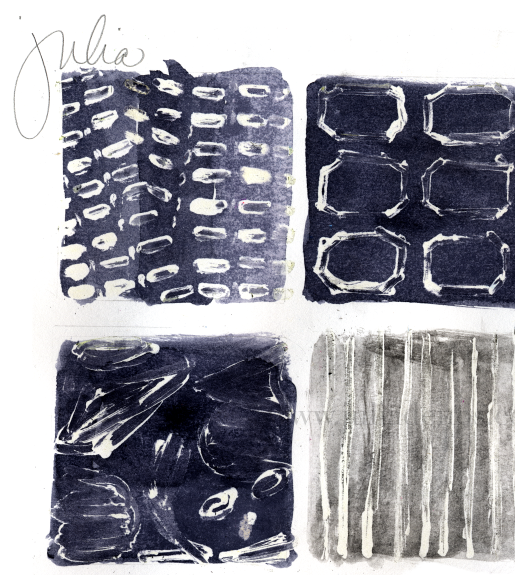 Imagining seafaring jackets with vintage navy-striped collars–away to sea! Playing with jewel tones in pastel, ink, colored pencil on Borden & Riley Paris Bleedproof #234.Next week: San Francisco!