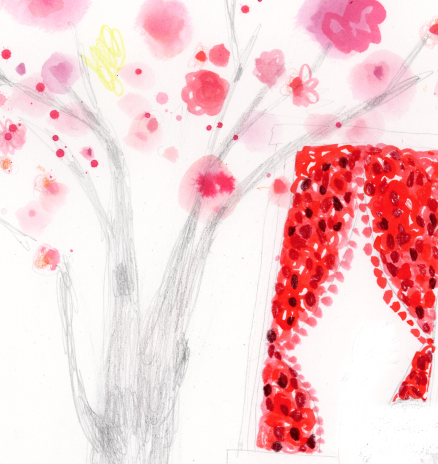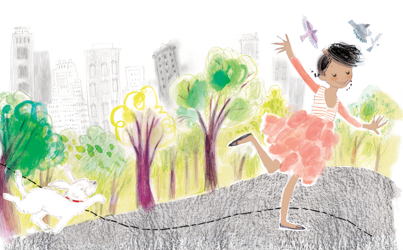 There is always that initial image you see after shutting your eyes and you've let a manuscript whisper through your mind. For this book, it was a little window on the first floor of a brownstone, with a blossoming tree nearby. As I looked in the window from the sidewalk, I watched a little girl prance to her mother in her FAVORITEST dress for an embrace. I tried my best to stay true to that glimpse for the duration of the work, and expand the world from that little window...