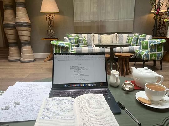 12:30pm. Now she’s checked out and with ten hours to kill until her train, the concierge has set up Ms Walsh in the conservatory with some tea.