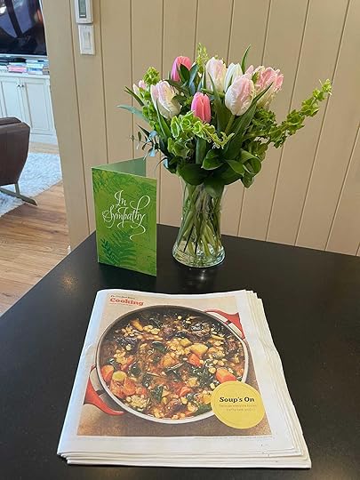 My new project? I’m working my way through all twenty-four receipts in the NYT pull-out. I don’t eat pork, rarely eat beef or lamb, and the idea of pickles in a soup kind of makes me gag. But I’m just going with it, cooking one by one by one. Feeding the people I love and starting to the ring-fence the void.