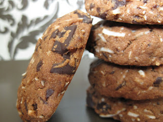 I have a serious sweet tooth and could easily replace cookie dough for all meals. Since this is not always the healthy choice I have created a yummy and nutritious cookie combining two of my favourite things … coconut and chocolate. Now this is not a low-fat cookie so you can't eat it like it's going out of style but I have been known to have one for breakie!