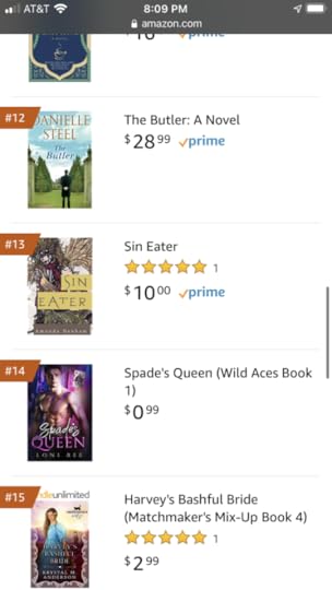 My first review of Sin Eater is up, and it was #19 (out of the top 100) on the contemporary fiction new release list yesterday! It got to #13 last I looked. 😍