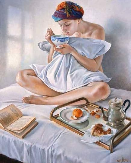 Naked ladies vibing with books and food seems to be her thing and I’m here for it.
