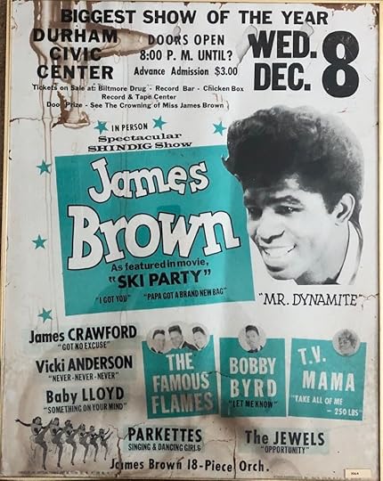 The concert poster dad pulled off the wall at the Durham Civic Center the night he saw JB in 1964. He was the only white guy in the crowd.
