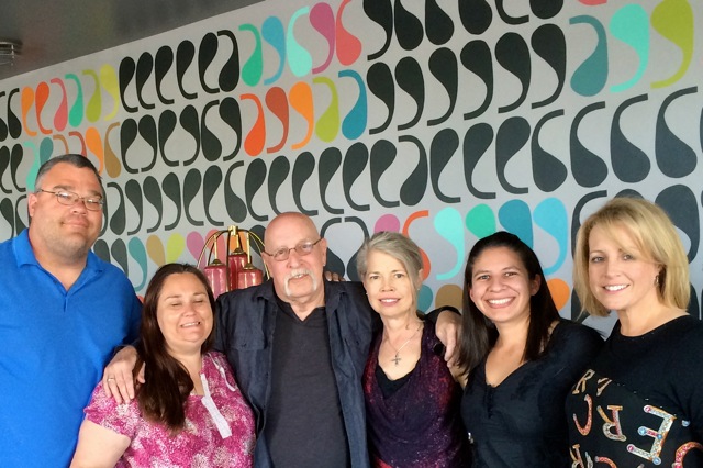 Got back from visiting my best friend, Tom Rough and his beautiful wife, Lisa, in Scottsdale a few days ago and had this in my FB account. Very proud to be in such good company. Had a great time in Arizona and got to visit with a couple of my online class students--Maegan Beaumont, who's not in class these days and is releasing her fourth book this week, and Linda Thompson, who's just about to have her novel sent out soon by her agent. And, Joe Beaumont, Maegan's HUGE husband, who I always try to keep smiling... Got to watch Tom's new salon, Taglio, going up and it looks great! Actually, it's not his new salon--he's just moving to a better location in the same mall--but the physical plant is all brand-new.