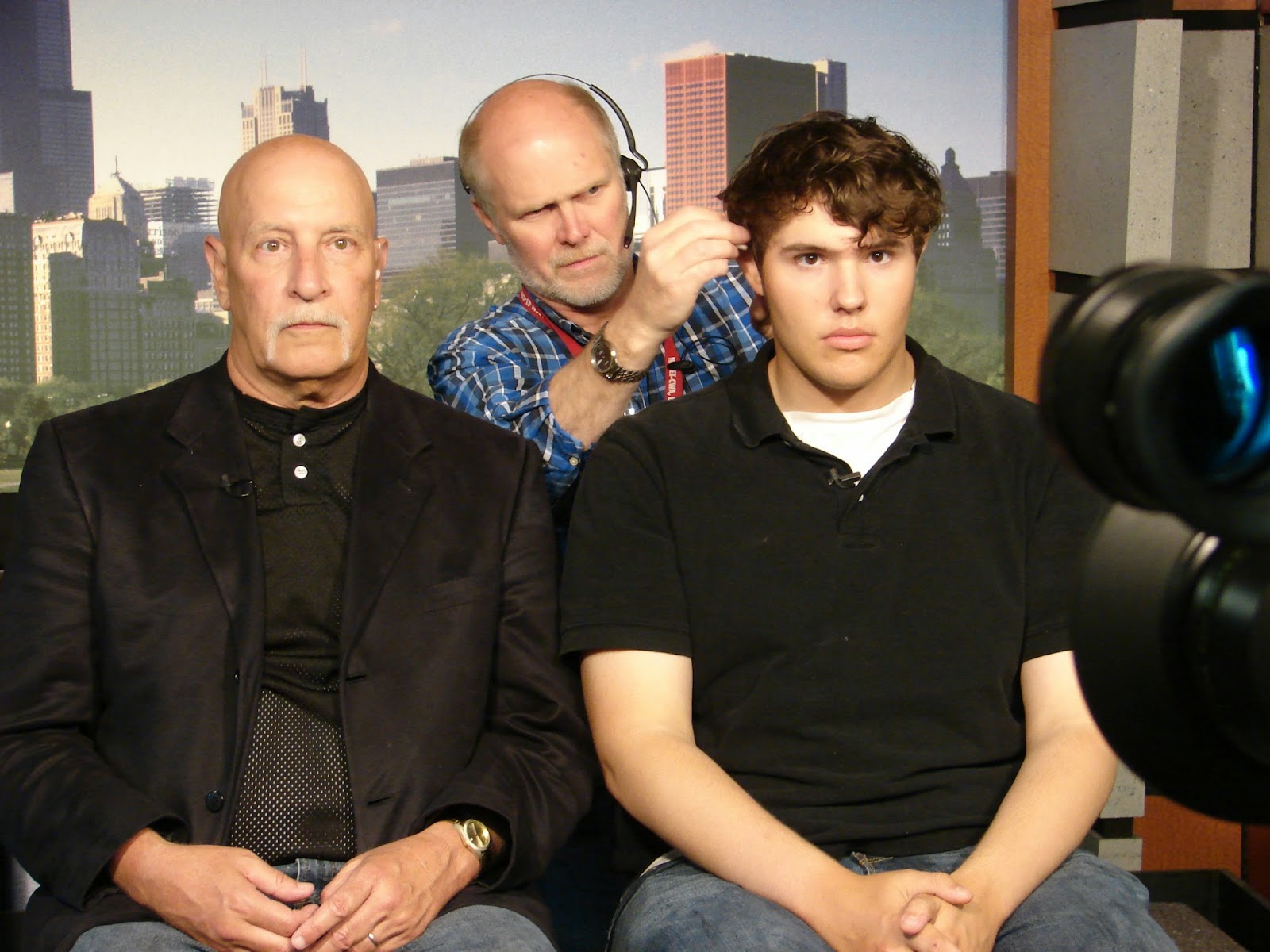 (Here's a photo of me and Mike getting made-up before one of our two appearances on MSNBC-TV for baseball. He was in the eighth grade then. He's a lot bigger now! Towers over me.)