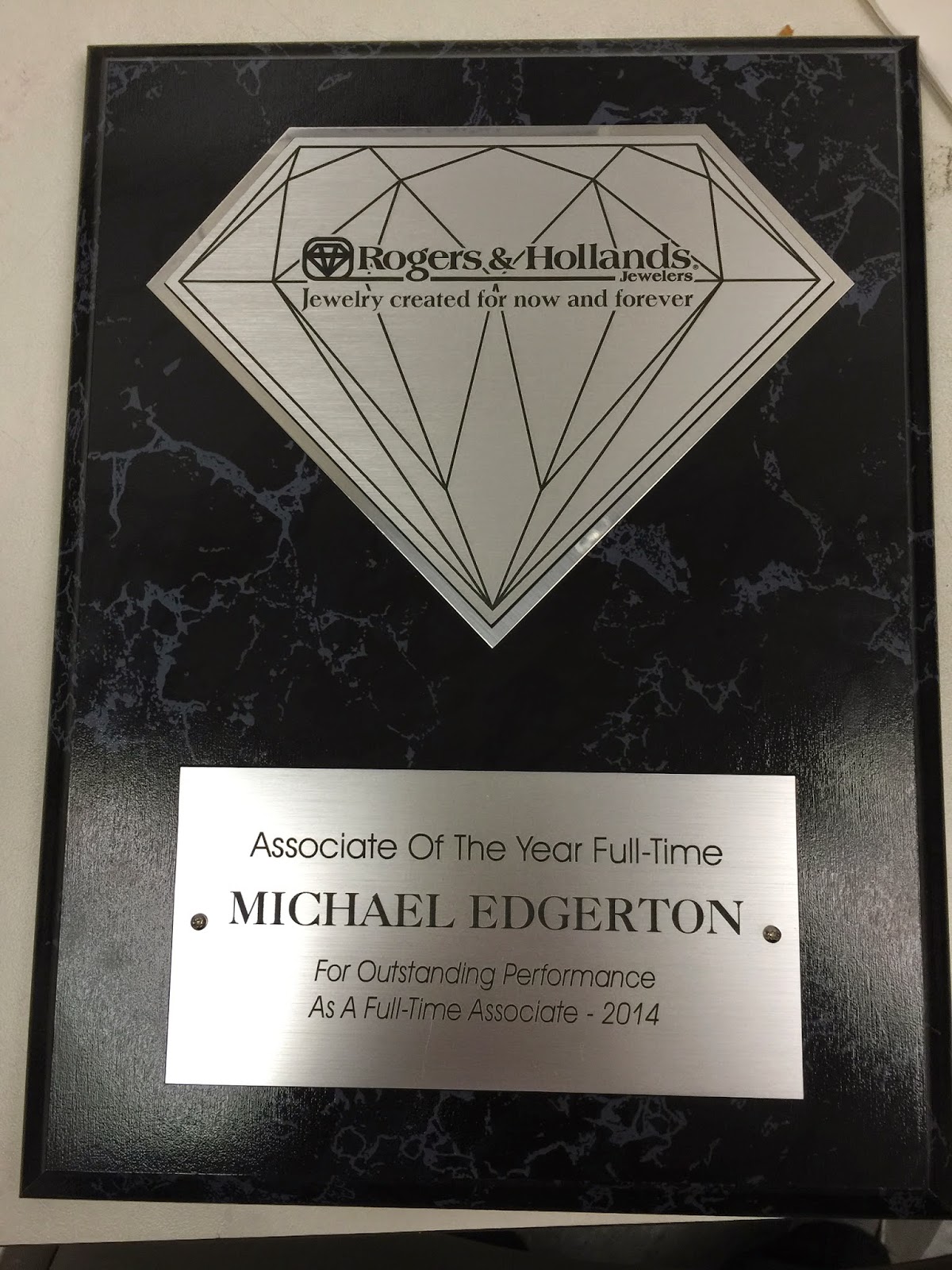 I am absolutely beaming these days! My oldest daughter Britney and my son-in-law Ray Robinson just released their book to help thyroid sufferers, my youngest daughter Sienna and my son-in-law Jason Cox keep growing the cutest grandson in the world, and then today... my son Mike was just named the Associate of the Year for Full-Time Employees by his boss at the premier jewelers, Rogers and Hollands. They award one part-time award and one award for full-time employees. Out of their chain of 80 stores! Mike nailed the full-time employee award! He works at the Ft. Wayne store and is always their leading salesperson. Also, just recently, Mike was awarded his 7th Platinum Sales Award in a row for his sales performance. I have to say that Mike got his brains from his mom Mary--the reason I know this is because I still have all of mine...