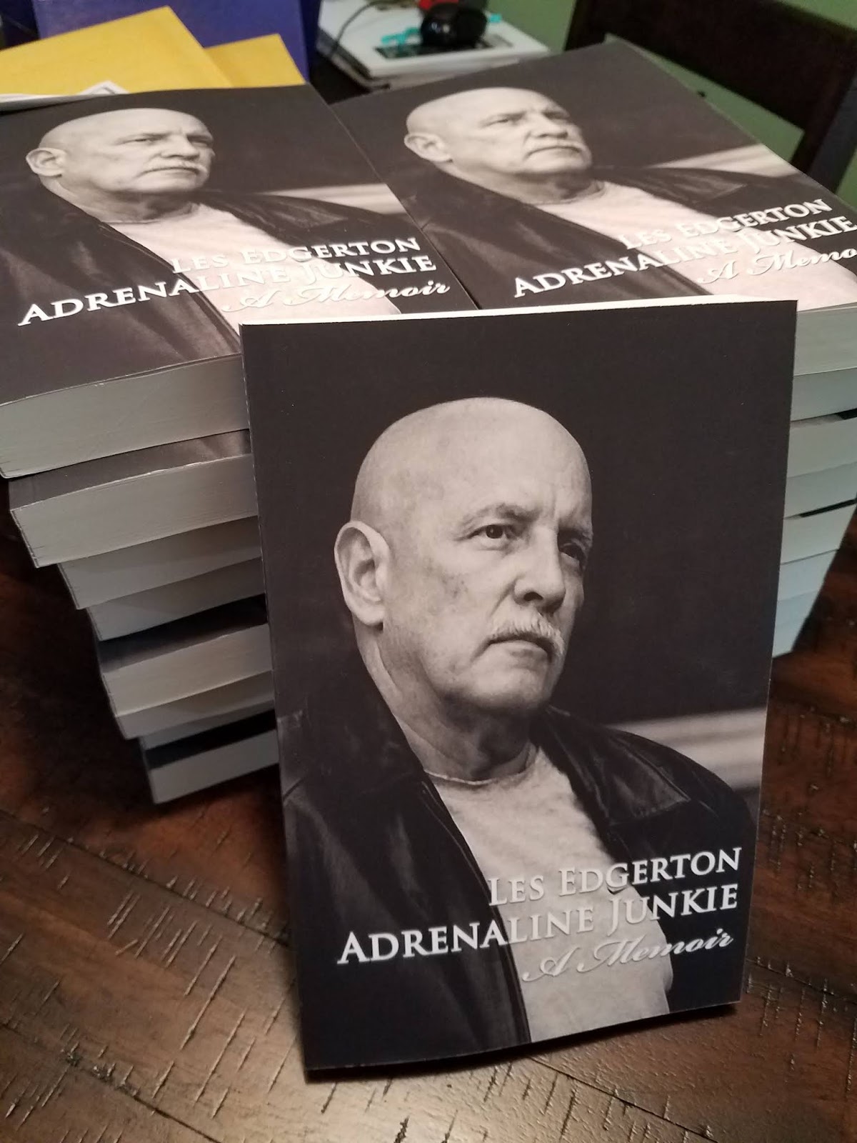 Eric Campbell my publisher at Down & Out Books, just sent me this photo of the ARC copies of my memoir, Adrenaline Junkie. These get mailed out to reviewers and places like the NY Times, Washington Post, Publisher's Weekly and a bunch of others. It will be released for sale in November.