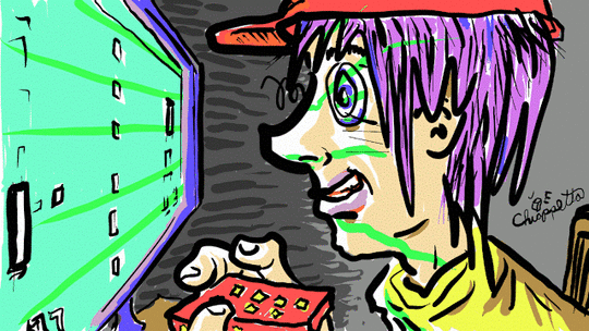 I created this animated digital art as a way to illustrate my latest joke. It features an obsessive video game player who is captivated by Pong. As pop culture puns go, this one is sure to tickle your appetite.