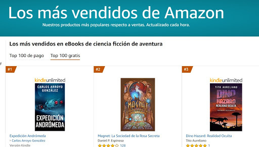 Expedición Andrómeda ya es número uno en el top 100 gratis de Amazon para la categoría de "Los más vendidos en eBooks de ciencia ficción de aventura".