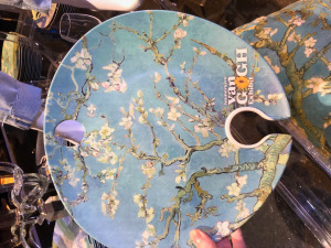 In writing about making my daily visits to the Met as part of my research into the five senses, I write about the gift shop. I used to wonder: Does a plate printed with Almond Blossoms trivialize that masterpiece? Did a Van Gogh knitted key-chain insult the artist’s dignity?