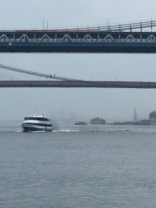 When I left the exhibit, once outside I had beautiful view of water and bridge—and far in the distance, the Statue of Liberty. I'm always happy to glimpse the Statue of Liberty (if you want to hear a three-minute "A Little Happier" episode where I talk about that, it's here.)