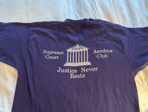 Justice O’Connor’s personal qualities, as well as her professional qualities, helped her to succeed. She was analytical, tough, and practical, and she also believed in having fun at work. When she and her clerks came in on weekends, she’d often bring lunch for us all to share, we celebrated birthdays, we went fishing—I also attended her famous morning aerobics class, with our “Justice Never Rests” t-shirts.