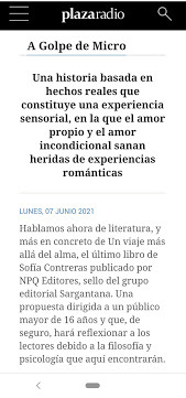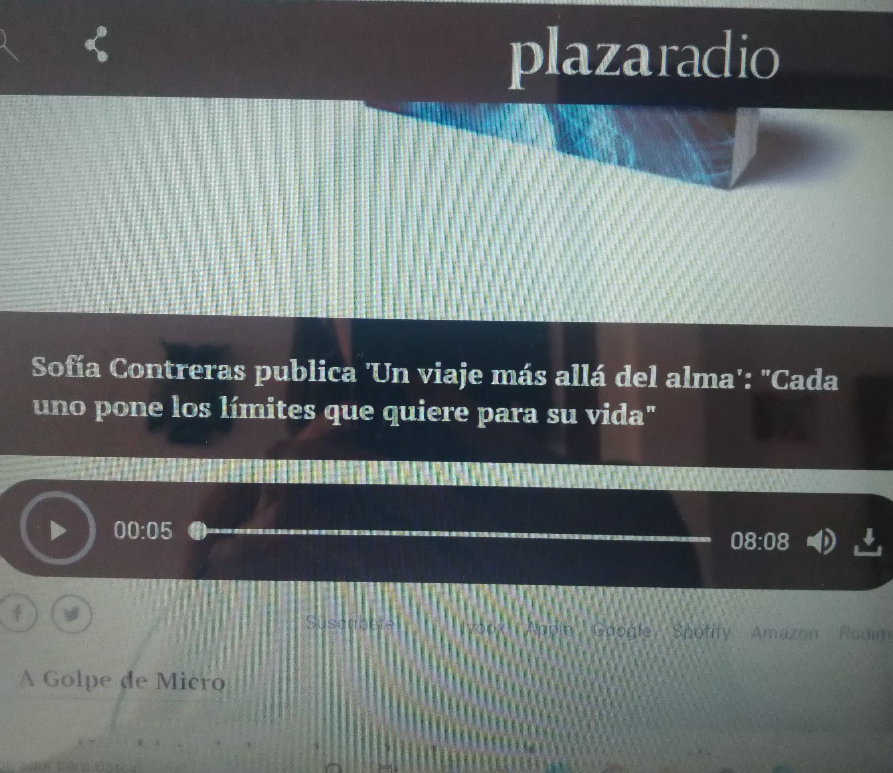La manera más cercana de llegar al lector es a través del don de la palabra, de esa manera me ofrecieron una entrevista para "A golpe de micro" del programa Plaza Radio , desde la Comunidad Valenciana. Una entrevista negociada por mi editorial. En el momento de comunicármelo, me quedé bastante sorprendida y a la vez agradecida. Así ,que podría responder al respecto, encantada con la vida, del esfuerzo y la constancia llegan los logros.