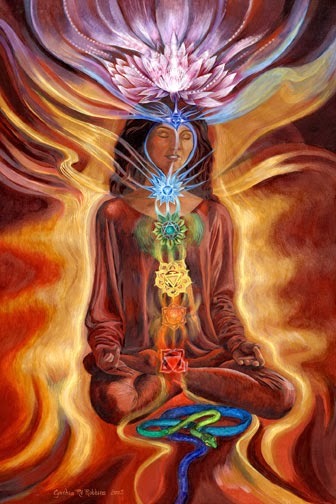 En nuestro cuerpo Kundalini habita en la base de columna vertebral. Cuando hay alguien despierto conscientemente la energía Kundalini que fluye desde nuestro chakra básico en la base de la columna y se eleva hacia la médula espinal es similar, a una serpiente en llamas o una luz dorada . En su paso, activa y fortalece los chacras restantes de energía.