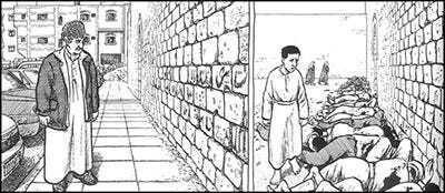 The scene that Ali refers to is based on an actual episode from the war, in which the captured FLN commander Larbi ben M’hidi is asked whether it is cowardly for women to carry bombs in baskets. Ben M’hidi points out the destruction of Algerian villages by French planes, and replies ‘Give us your bombers, and we’ll give your our baskets,’