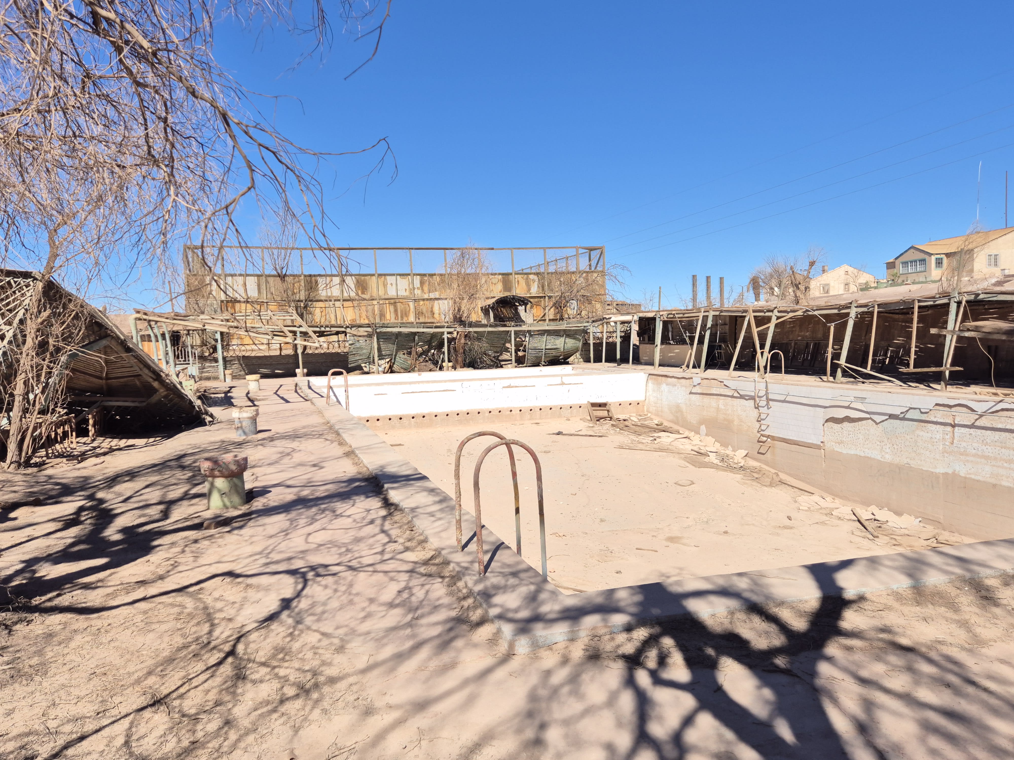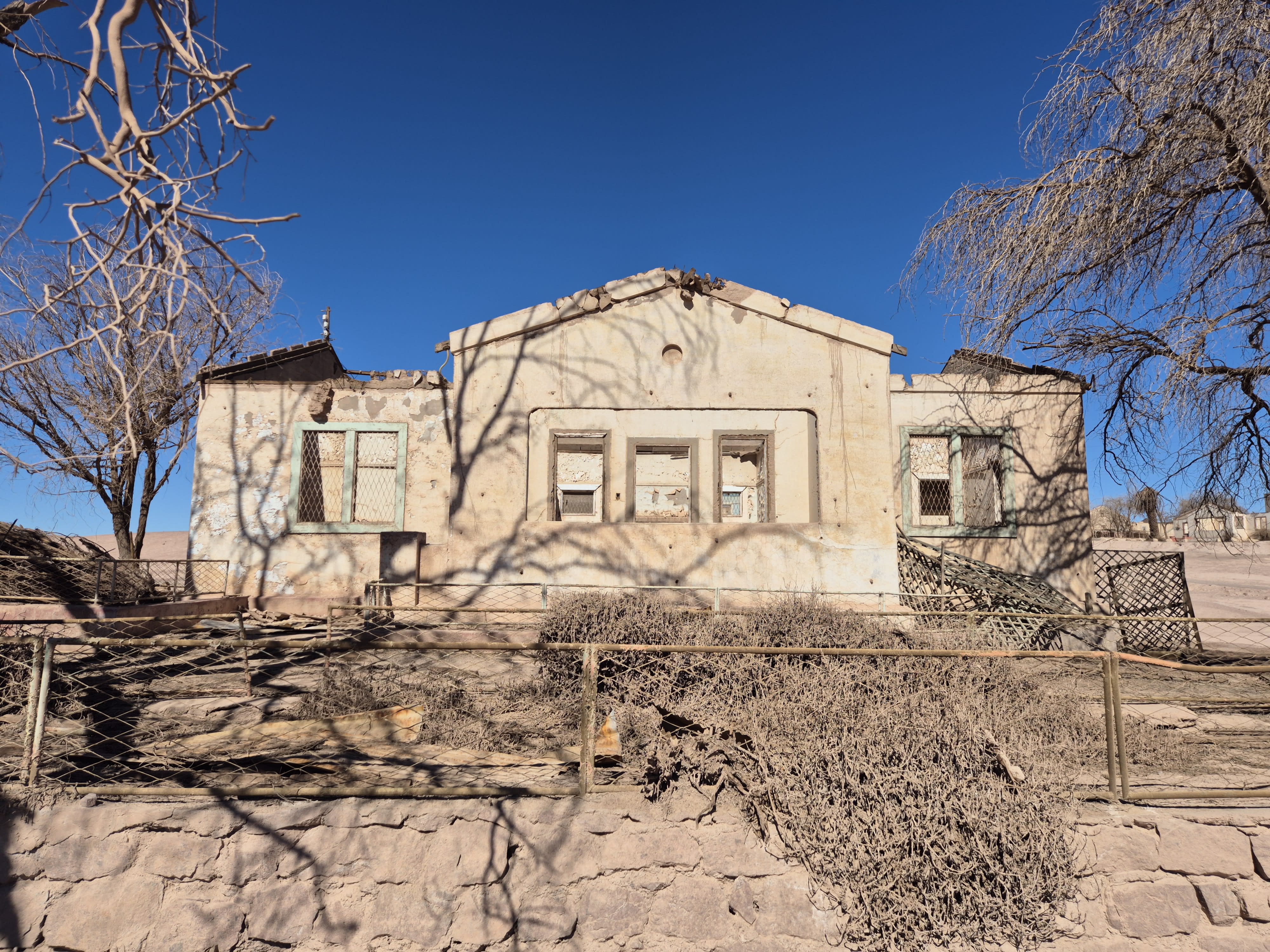 A few lasted longer than most. One day, we drove through the desert from the city of Calama to Pedro de Valdivia, the last salitrera to close in the Atacama. Built in 1931 by the Guggenheim Brothers, Pedro de Valdivia once had 14,000 inhabitants, with all the facilities expected of a modern company town: a sports stadium; a cinema-theatre, a hospital, school and children’s playground:
