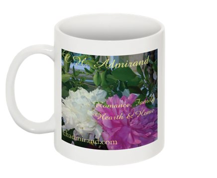 And I'm giving away a pair of mugs and matching spiral bound notebook with a picture of peonies and roses from our garden on them...aren't they lovely?