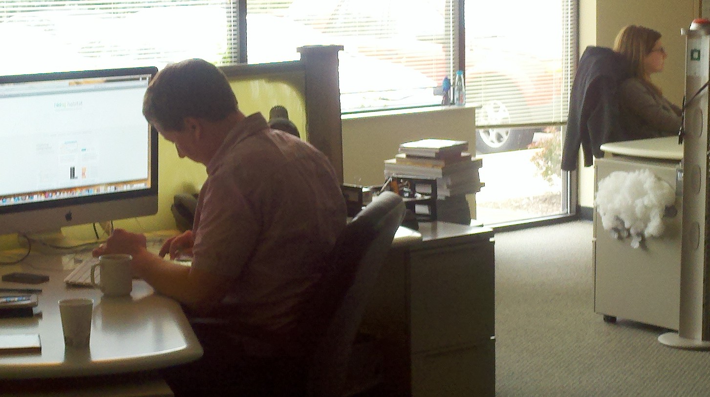 Production Department hard at work, so jealous of their top notch computers and monitors!