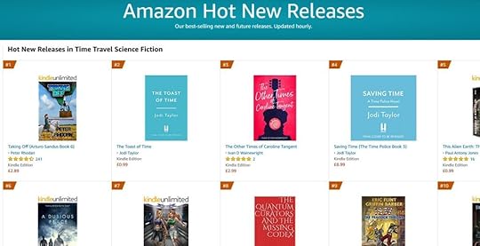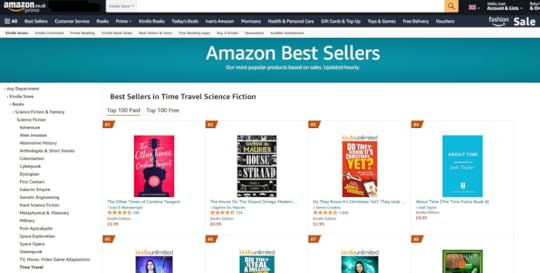 We all want to reach that number one Best Seller spot on Amazon/other sites – I’m a long way from that! But I did reach the dizzying heights of number three on Amazon’s Time Travel Hot New Releases during my pre-sales period (which gave me a great excuse for a few appropriate marketing tweets!); and during my 99p/99c promotion (more of that in my next post on marketing), I squeezed into the top 4000 of all UK Kindle books, and the top 25,000 of Amazon.com ebooks. That’s never going to make me my millions, but considering my average UK ranking is between 10,000 and 20,000, I was quite happy.