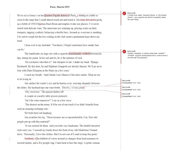 I was looking back today at my original manuscript of The Other Times of Caroline Tangent, before my editor, Lucy York got hold of it and provided all her wonderful improvements. And I thought it might be interesting for some writers (and readers) to see what it looked like at that point, and what sort of changes Lucy recommended.