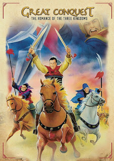 That failure to pick an angle and stick to it is one that dogs Great Conquest all the way through. It keeps threatening to do something interesting and appealing with its animation, aping the style of contemporary Chinese paintings, and had it committed to that, I suspect I'd have loved it despite its storytelling flaws. But more often, it opts to look like some sort of cheesy historical afterschool special. Outside of a few striking battle sequences, the character work is almost never that good, but the film is capable of producing some terrific backgrounds, so it's weird that a fair percentage look shoddy and out of keeping with what surely ought to be the reigning aesthetic. And given that the music makes the same blunder - we get some lovely traditional Chinese music, but a load of tacky action themes that could have wandered in from any low-budget anime - you have to wonder if this was somehow a deliberate stylistic choice, or if there were two different creative teams feuding against each other.