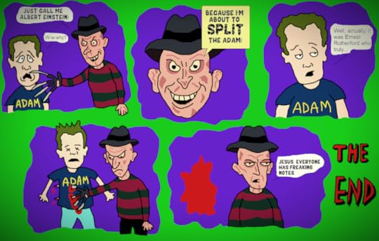 The character of Freddy Krueger (Robert Englund) started out as a serious threat in Wes Craven's horror classic A Nightmare on Elm Street (1984). In that film, Freddy is a vicious, hideously scarred killer who preys on suburban teenagers in the dream world. As the series progressed, however, Freddy became a pop culture sensation and, improbably, an icon to children and teens across America. The movies became campier in tone, and Freddy started cracking a lot more jokes between murders. Do you think he ever felt pressured to come up with clever one-liners and puns? I pondered that issue and turned it into the web comic above. Hope you enjoy.