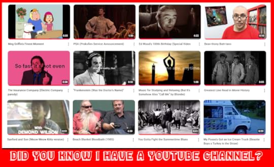 If you're reading this article right now, you obviously know I have a blog. Thank you for reading it. But I'm a multimedia, multi-platform artiste, baby. I cover the waterfront. I'm everywhere all at once. I hope by now you're aware of my podcast , which has been going for six years now. (New episode on October 29, by the way.) If you look to the right-hand margin of this blog, you'll see a sidebar with links to all my other social media accounts and places online where you'll find my work. So much stuff there, well beyond the scope of this blog. I'm posting this little article to alert you to the existence of my YouTube channel . Lots of fun, goofy content over there, some of it Ed Wood-related and some not. Check it out and consider subscribing.