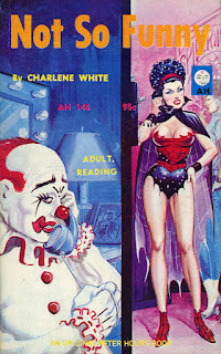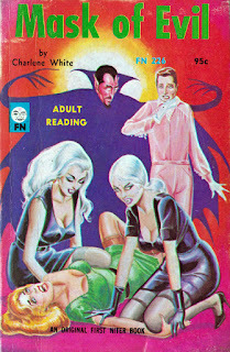 In 1966, Satellite Publications (Stanley Malkin and Eddy Mishkin's New York City-based operation that employed multiple other addresses in an attempt to mislead authorities) issued two books by Charlene White: Mask of Evil (hereafter Mask; [1] ) and Not So Funny (hereafter Funny; [2] ). Both were mass market format paperback originals priced at 95 cents ($9.70 in 2024 dollars) and featured cover art by renowned commercial artist Eric Stanton [3] . The books also included black and white Stanton cartoon work as interior advertisements [4,5].