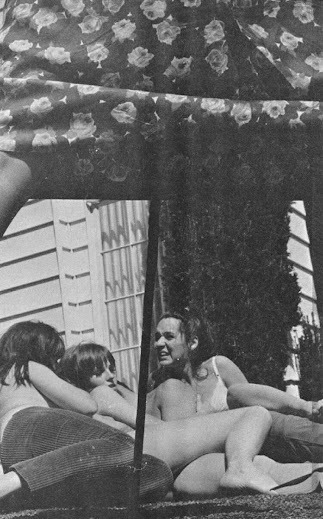 We start out fairly normally, with some generic-looking snapshots of an ordinary, dark-haired guy canoodling with some vaguely hippie-ish, half-undressed young women in some sunny outdoor setting. There is nothing to suggest that the man is a desperate rapist, nor is it obvious that the women are supposed to be students or that any of this is happening at a school. The women appear to be in their early-to-mid-twenties, well past their boarding school years.