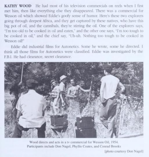 The Wesson commercial hasn't turned up yet, but at least four of Eddie's commercials can still be viewed today. And, blessedly, they're like mini-Ed Wood movies, each with its own plot and characters. Eddie himself plays a leading role in one of them ("Magic Man").