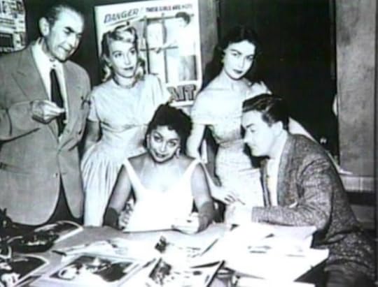 Rob also sent this photo, obviously taken at the same event. Note Bela's outfit, Ed's outfit, the Jail Bait (1954) poster in the background, and the mess of photographs on the table. I honestly have no idea who the third man is, but I bet you know and will tell me as soon as this article goes live.
