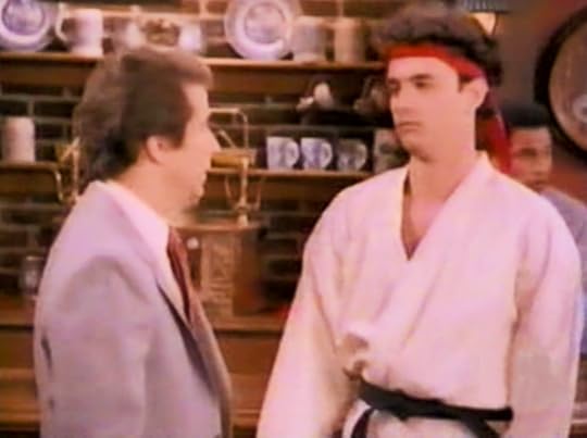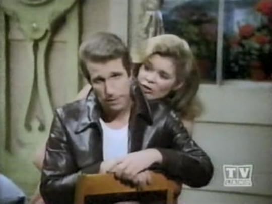 Happy Days did this, too. During Season 10 in 1982, for instance, the show aired a very lore-heavy episode called "Going Steady." The plot is nothing special. After years of dating every available chick in Milwaukee, habitual ladies' man Fonzie (Henry Winkler) decides to be exclusive with his current girlfriend, Ashley (Linda Purl). The Fonz may not be entirely ready for exclusivity, though, so he and Ashley squabble a little and almost break up. Ultimately, though, they get back together. Ho hum. Very predictable sitcom stuff.