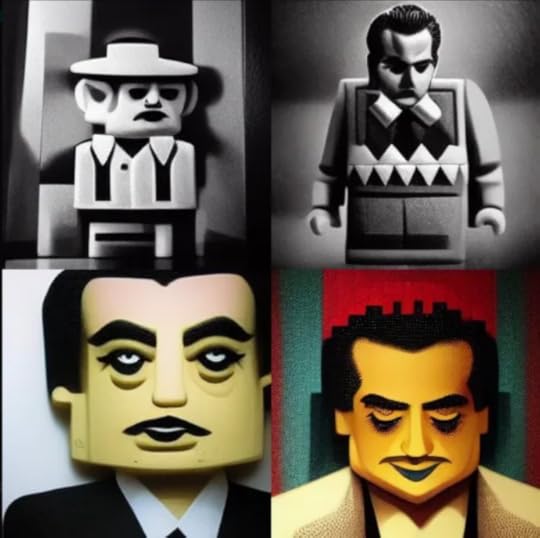 I'd say that falls somewhere between success and failure. It's not Hirschfeld, but it's not not Hirschfeld either. My second attempt at a prompt was: "Ed Wood made out of Legos." Here's how that turned out: