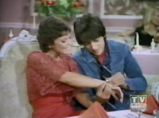 These issues are on full display in the episode we're reviewing this week, "Another Night at Antoine's." The plot has Chachi breaking up with Joanie so they can date other people for a while. Sort of a sexual Rumspringa. But then he decides he wants her back, and it all leads to a big, public kerfuffle at a fancy French restaurant. (No points for guessing that it ends with a reconciliation.)