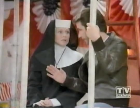The ninth season of Happy Days takes place in 1963, the year of "Dominique," so it's only natural that they'd have their own take on the nunsploitation genre. Their version was called "No, Thank You" or "The Nun's Story." The plot has a young nun named Gloria (Diane Adair) teaching history at Jefferson High. Not knowing his new colleague is a bride of Christ, Fonzie (Henry Winkler) pursues her romantically (without success) and even forces a kiss on her. Naturally, when he learns the truth, Fonzie is eaten up with guilt. But Gloria is one of those happy-go-lucky, non-judgmental '60s pop culture nuns, so she's not mad at all. The episode ends with Gloria knocking Fonzie into the water at a carnival dunk tank, a scene that reminded me very much of the MAD song about "the problem of religion."