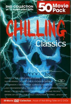 Well, after reading some of Craig's Chilling Classics reviews and becoming significantly intrigued, I decided to buy a copy of the set myself. It set me back a whopping eight bucks. I wanted to follow his lead and review each and every movie. At the time, I was a very active participant at a website called The Four Word Film Review, so I posted my reviews to that site's message board. The resulting thread is a true epic that I still remember fondly. If you like this blog, I recommend that you read through the entire thread. Not only did I review all 50 of the movies in the set, I held a mock awards ceremony and even posted some song parodies based on the films.