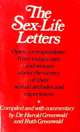 For this article, Ed Wood quotes liberally from a book called The Sex-Life Letters (1972) by Dr. Harold Greenwald and his wife, Ruth Greenwald. It's a collection of letters from real people about their actual sexual lives. Now here is a book that has lived a double life of its own. Greenwald (1910-1999) was an eminent psychotherapist who was known for his expertise on the psychology of prostitutes . Consequently, there is an edition of The Sex-Life Letters from Crown Publishers that make it look like any other mainstream, respectable book about sex on the market in 1972.