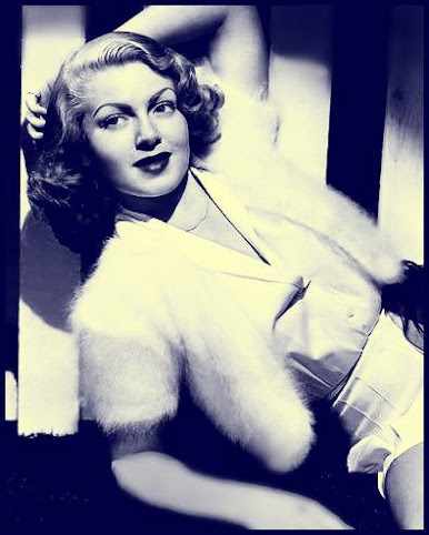 In addition to the movies themselves, Ed has fond memories of publicity stills of actresses Lana Turner and Ann Sheridan. And I mean very specific publicity stills. For Turner, he remembers a shot of her "sitting on one hip in front of a short fence" while wearing a "short sleeved, white angora slip over." Meanwhile, he recalls a photo of Sheridan "leaning out of the window of her studio bungalow" while modeling a green angora creation. I believe I located the Turner picture, but the Sheridan one eluded me.