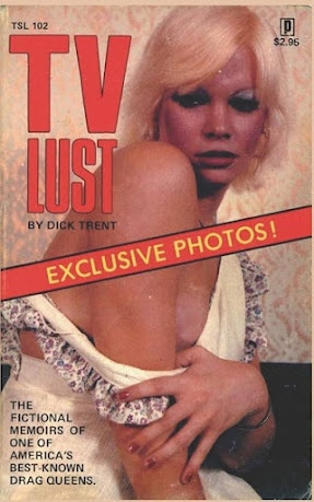 The novel is illustrated with photos of the world's ugliest transvestite in some really awful poses.Ouch. I feel that Hayes may have been experiencing some burnout by the time he got to TV Lust, having worked his way through many Wood books in a row, and this may have clouded his judgment somewhat when it came time to write his review. Once again, James Pontolillo had some insights to offer on the book's mysterious cover model: