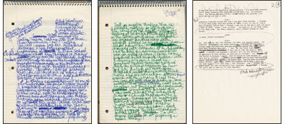 The show, which remains open until April 15, 2012, gives a good sense of how Wendy’s life inspired her writing and humor, which often had an edge. How could it not when, upon hearing that Wendy won a Pulitzer prize, her mother apparently said that she’d be happier if she brought home a husband? Perhaps my favorite display was made of photocopies of drafts of a play, showing how she revised tirelessly in search of, then moving toward, a key line. We see her deleting a final line of The Heidi Chronicles (noting “this is silly” in the margins) and shifted dialogue between two characters to a monologue near the end: “I thought the whole point was that we shouldn’t feel stranded. I thought we were in this together.”