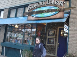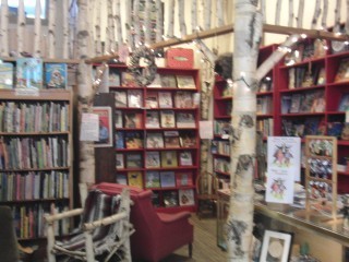 On Sunday Sam studied for a midterm while I wrote, then we traveled past Lake of the Isles to Birchbark Books http://birchbarkbooks.com/ which is owned by Louise. We were warmly greeted by a person who didn't give me her name, but told me the sweet black dog was named Dharma, and that the store dogs keep their own blogs. There is a Hobbit Hole where children can curl up and read, a rescued confessional which they say Louise is collaging with images of her sins, a handmade canoe hung from the ceiling, birchbark bird houses and other art in every direction, but best of all the books are chosen with care. I loved the sections on Native American language, history, and literature, the wide selection of books about nature, the gorgeous picture books, but for a small shop, there was a wonderful selection in just about every genre. It was hard to leave, but also the best place to leave from, with my bags a bit heavier, before heading to the airport.