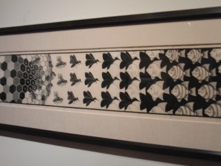 My husband was really the one who wanted to see the show, as Escher's work can leave me dizzy. (It took lots of extra help one summer for me to make it through a college logic course: I had nightmares of tables turning into numbers and letters, and have a thing for solid ground.) But this show tipped me in a good direction, at least for the afternoon.