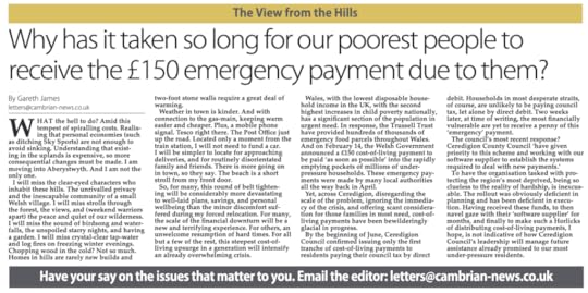 For the organisation tasked with protecting the region’s most deprived to be so clueless to the reality of hardship is inexcusable. The rollout was obviously deficient in planning and has been deficient in execution. Having received these funds, to navel gaze with their ‘software supplier’ for months, then finally to make such a Horlicks of distributing cost-of-living payments, I hope, is not indicative of how Ceredigion Council’s leadership will manage future assistance already promised to our most under-pressure residents.