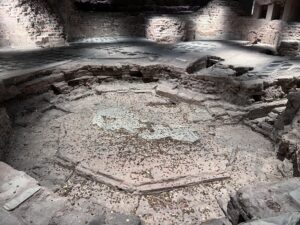Fascinating for me to revisit, is the discovery of the baptismal font below the church in the remains of an earlier church where St. Augustine was baptized by St. Ambrose in AD 387.